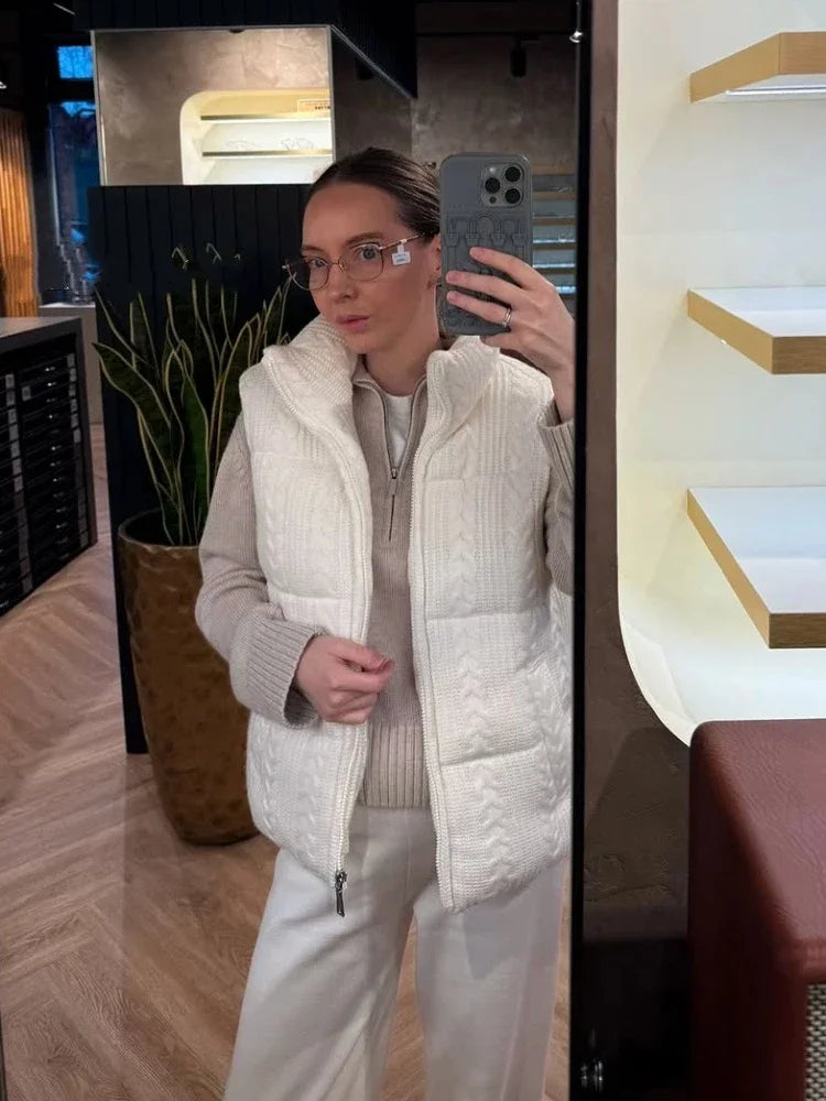 Élève ta garde-robe de mi-saison avec le Gilet sans manches tricoté Jayden, un modèle qui allie chaleur pratique et esthétique épurée et moderne. Confectionné en polyester de haute qualité avec une isolation thermique renforcée, ce gilet offre juste ce qu’il faut de protection douillette sans l’encombrement d’une veste complète. Sa conception épaisse et soignée en fait un allié essentiel contre le froid hivernal, formant une barrière fiable tout en restant léger à porter. Doté d’une fermeture éclair lisse sur toute la longueur et de poches pratiques pour tes indispensables, ce modèle est pensé pour celles qui bougent. Que tu partes pour une escapade urbaine le week-end ou une promenade tranquille, son style uni et sobre s’associe naturellement à des sweats à capuche ou des tricots épais, tout en restant un choix judicieux pour les matins frais du printemps et de l’automne lorsque la météo change.