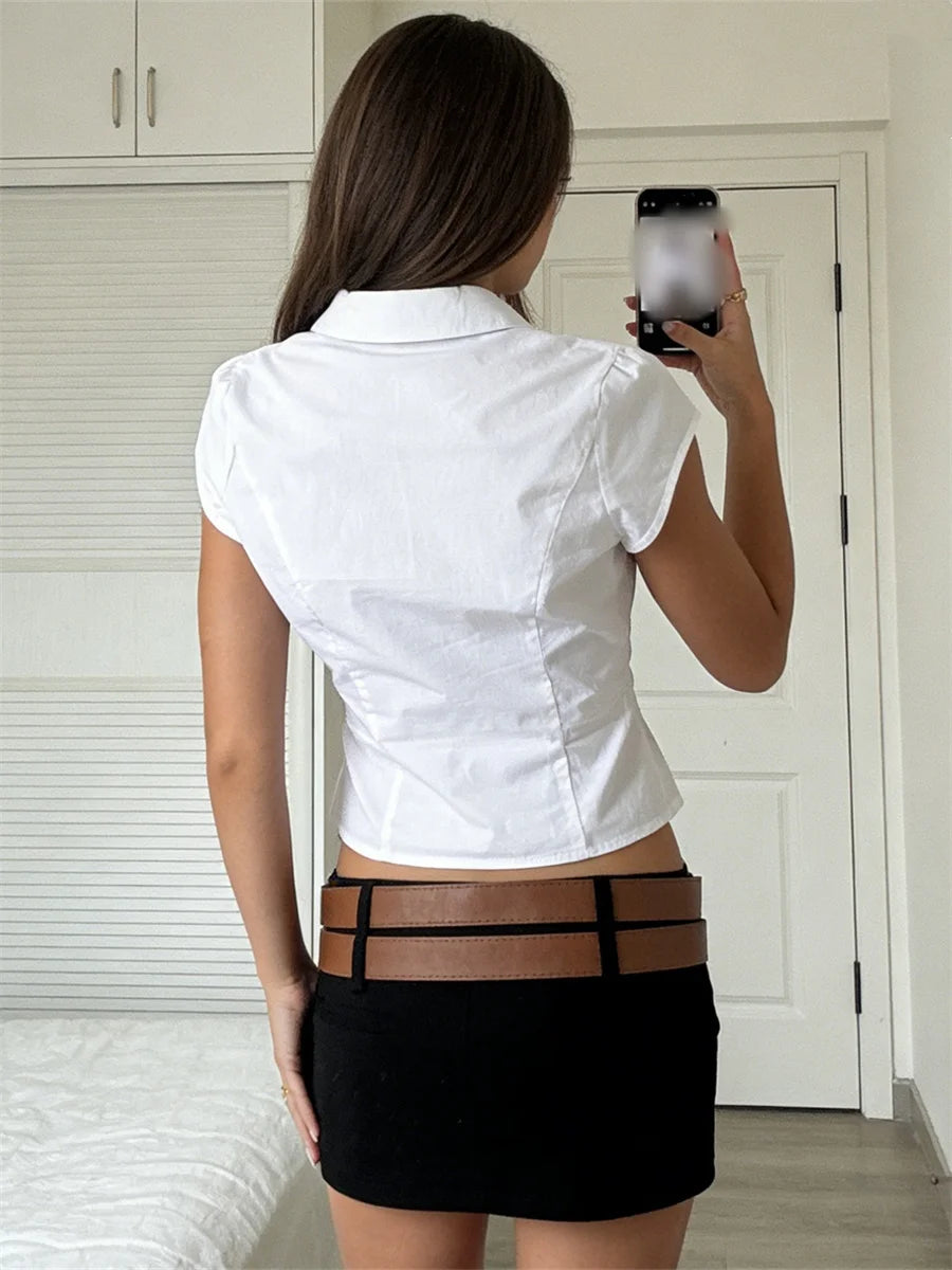 The perfect cropped button-down that brings effortless cool to everything you wear. This isn't just another basic—it's your new go-to piece that transforms any outfit from ordinary to street-style worthy.