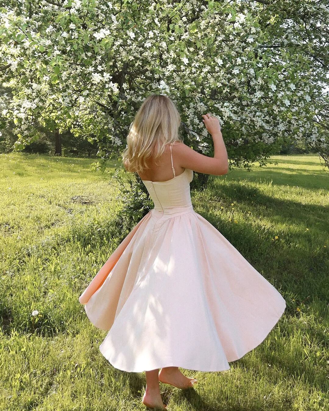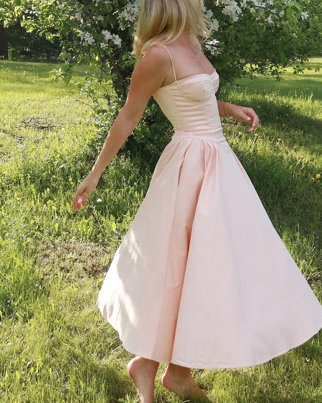 Embrace the vibrant energy of the warmer months with the Myrna Spaghetti Strap Midi Dress, a quintessential piece designed for the modern woman's spring and summer wardrobe. This stunning midi dress perfectly captures the essence of breezy afternoon garden parties and sophisticated evening soirées alike. Crafted with a meticulous eye for detail, the dress features a chic spaghetti strap design and a flattering slim fit that accentuates your natural silhouette with effortless grace. The true standout feature is the elegant lace-up back, which not only provides a customizable fit but also adds an unexpected touch of allure and sophistication. Whether you are strolling through a coastal town on holiday or celebrating a special event, its lightweight feel ensures you stay comfortable as temperatures rise. This versatile staple seamlessly transitions from a casual daytime look to a sexy, elegant party ensemble, making it the ultimate go-to for your seasonal rotation.