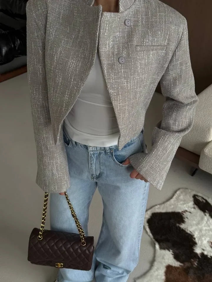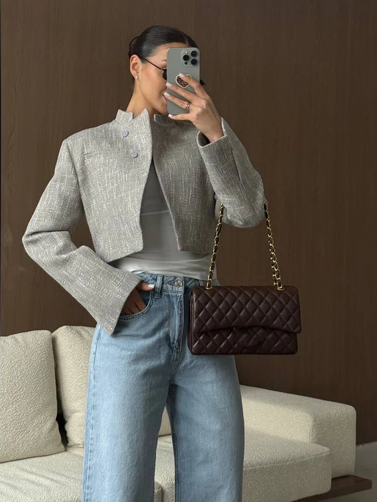 Sofia Plaid Stand Collar Blazer