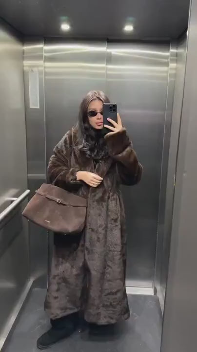 Le Manteau Long Lucie en Fausse Fourrure sublime chaque look.