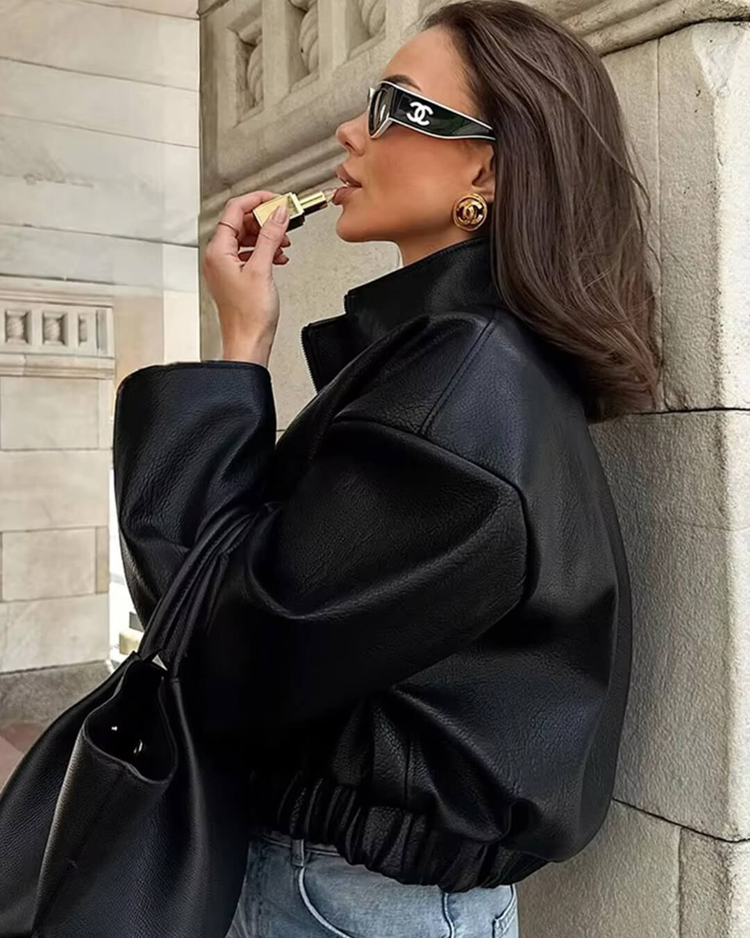 La veste Sylvia Zip Up Leather Jacket t’assure un look cool sans effort tout en offrant durabilité et confort tout au long de la journée. Améliore ton style avec notre veste Premium Black PU Leather Jacket, conçue pour offrir la combinaison parfaite entre mode moderne et confort quotidien. Cette pièce polyvalente présente une coupe ample flatteuse, un col montant élégant et des manches longues pour une allure assurée, adaptée à toutes les saisons. Fabriquée à partir de polyester de haute qualité et de cuir PU, elle garantit robustesse, texture lisse et finition soignée qui rehausse instantanément ta tenue. Idéale pour un usage quotidien, les sorties nocturnes, les voyages ou pour un look streetwear affirmé. Porte-la sur ton t-shirt ou hoodie préféré pour un superposition facile. Un essentiel intemporel qui t’apporte une confiance inébranlable où que tu sois.