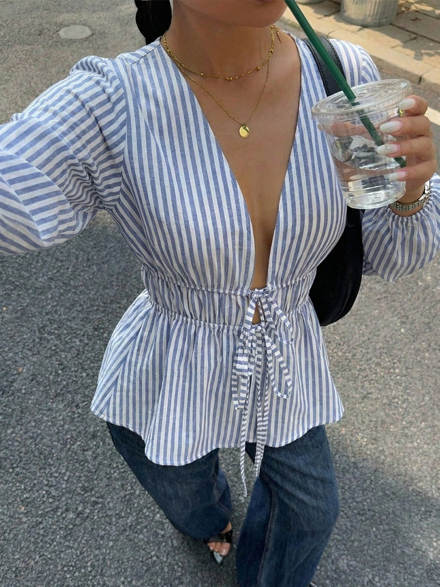 Blouse Yelena à rayures avec nœud devant pour femme